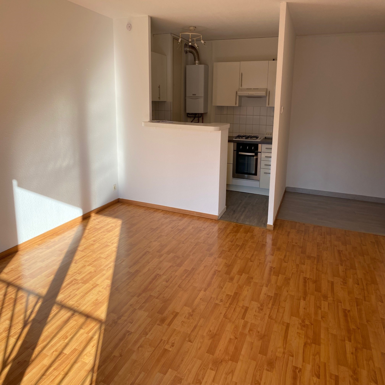 Grand Rue à RIXHEIM, lumineux F2 de 52,60m² au 1er étage comprenant : une entrée, une cuisine équipée ouverte sur grand séjour, une chambre, une salle d'eau.
