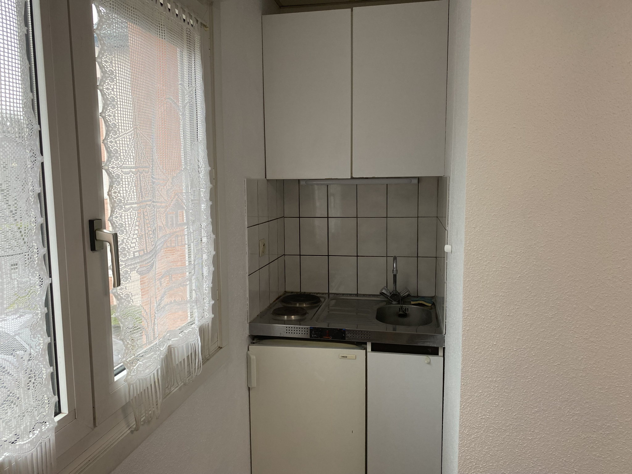 9 chemin du Routoir à ILLKIRCH, studio de 14m2 situé au 1er étage avec ascenseur comprenant: une pièce principale avec placard, lit, bureau, kitchenette complète, salle d'eau avec douche et WC.